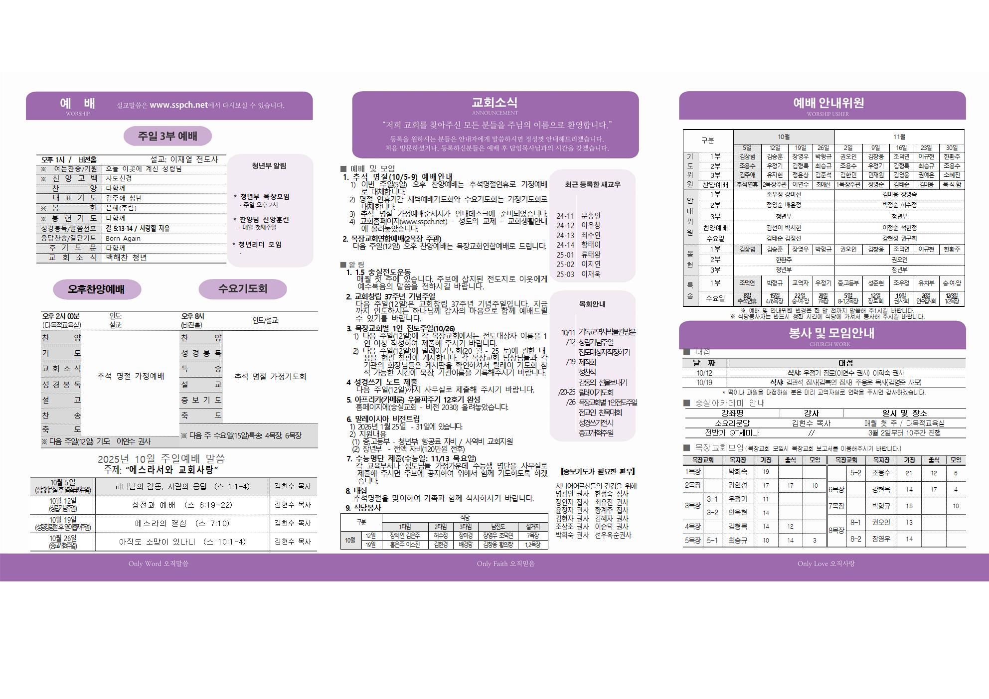 2025.10.26 - 10월 넷째주일(목장교회별 1인 전도주일 / 종교개혁주일 / 전교인친목대회)