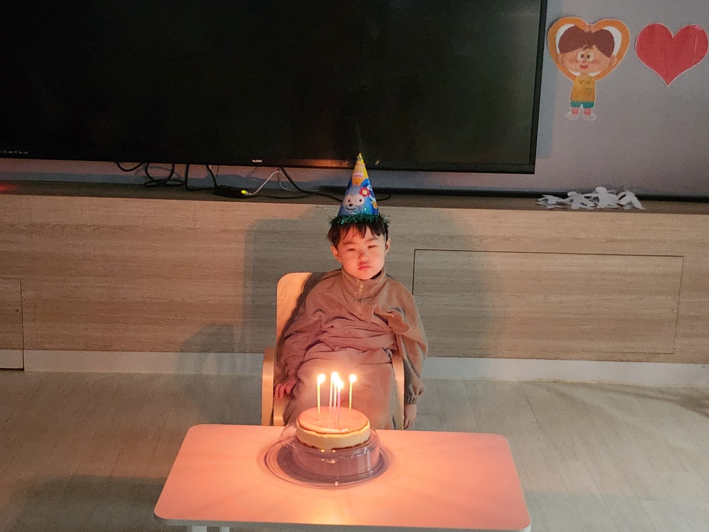 -유치부 예배를 드리는 어린이들의 모습과 1월 생일인 남윤준 어린이를 축복합니다.